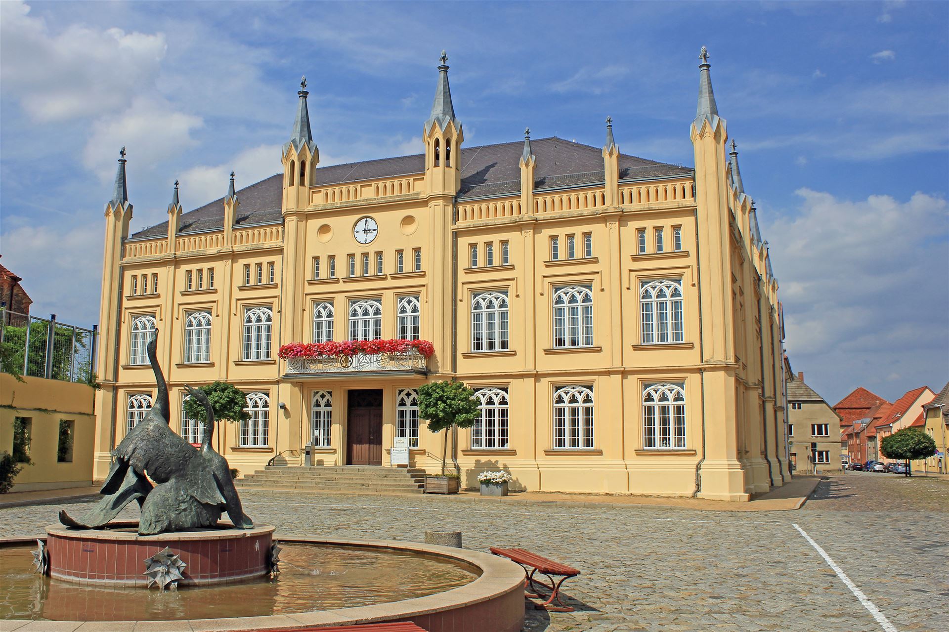 Bützow -Rathaus mit Gänsebrunnen